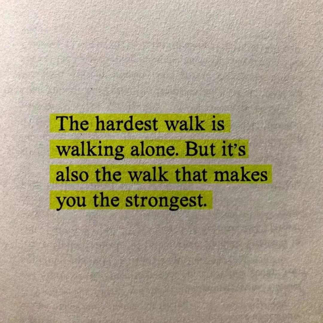 The hardest walk is walking alone. But it’s also the walk that makes you the strongest.