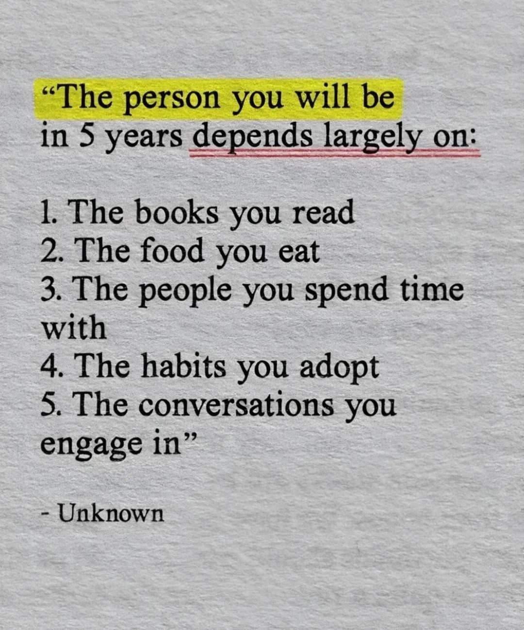 五年后的你会是什么样,很大程度上取决于这几件事:读的书、吃的饭、常来往的人、养成的习惯,还有聊的天。